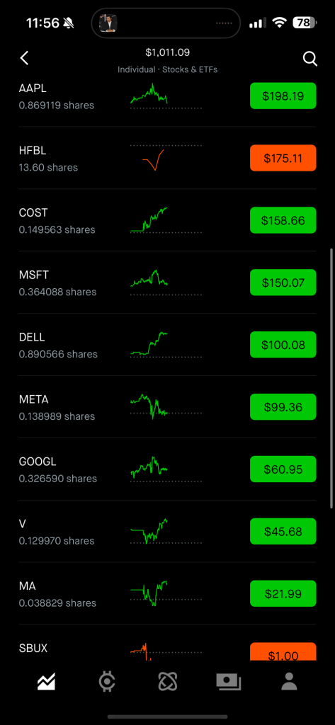 • Total Portfolio Value: $1,011.09 (a notable jump from last month’s $803.24)